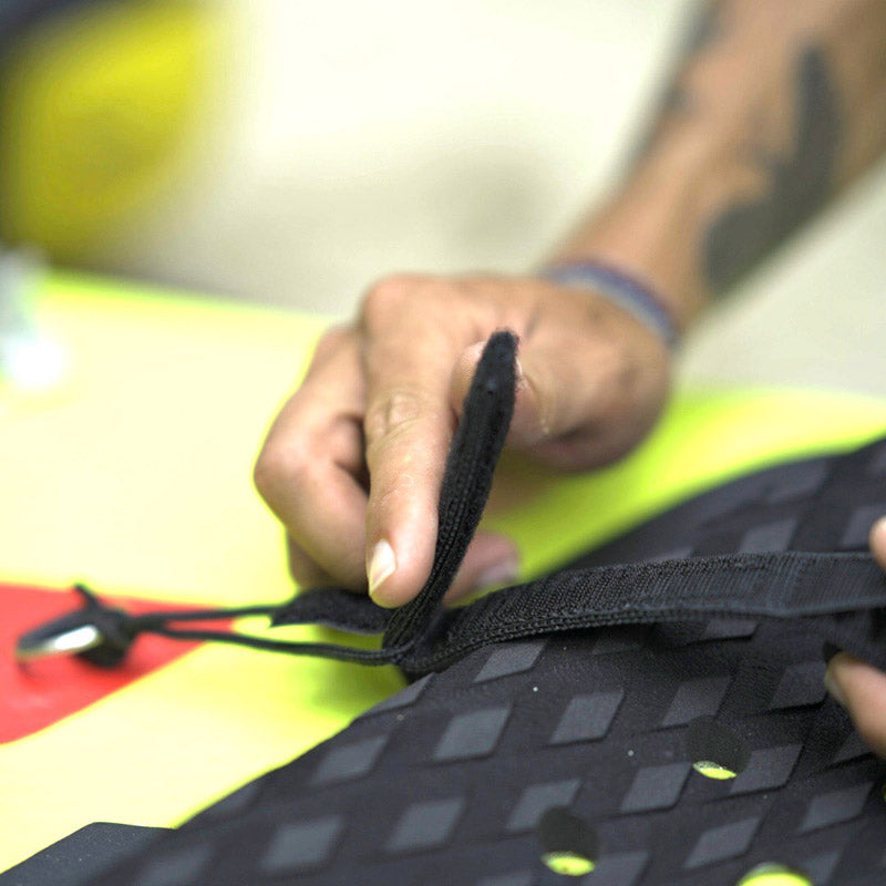 Stay safe on the water and don't loose your board. The River leash by Aqua Marina is designed specifically for your safety and comfort to keep the board with you at all times. It has 2 Stainless Steel swivels on rail saver and foot-strap and solid webbing & velcro with quick release tabs. There is a lockable Carabiner with Stainless Steel Quick Release Shackle for swift, safe release in case of emergency with an easy to see and use big red toggle to pull. It sits above the board unlike an ankle leash and being extreme flexibility means no catching on the board as you move around. The cord is covered by a thick, soft and durable pvc tube that won’t let you down.
